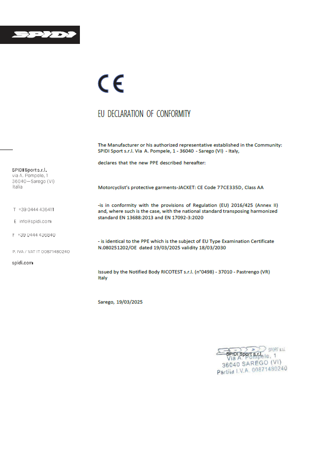 WEITERLESENNach einer langen Zeit der Erprobung auf der Rennstrecke, durch Computersimulationen und Tests im urbanen Umfeld, haben Techniker der SPIDI Community den Warrior Tech erstellt. Eine neue Technologie, nach einer sorgfältigen Studie von Biomechanismen und Ergonomien, fähig den Fahrer im Falle eines Sturzes an den am meisten sensitiven Bereichen zu schützen. Die niemals endende Suche nach, und Entwicklung von, technischen Innovationen, wird mehr und mehr treffsicher und erreicht seinen Höhepunkt mit der Vorstellung des Warrior Tech; eine Technologie mit einer Reaktionsfähigkeit bei extremer Beanspruchung. Dank seines modularen Designs passt es sich perfekt an die natürliche Form des menschlichen Körpers an. Das innovativste Ergebnis, welche die gegebenen Möglichkeiten von Polymeren und Thermoformverfahren steigert, ist in der Gestaltung seiner Struktur gebündelt und ermöglicht die industrielle Produktion eines Protektors mit noch nie erreichtem Schlagdämpfungsvermögen. Mit der Nutzung der Warrior Tech Einsätze, erreicht die Sicherheit des Fahrers eine Ebene ohne Gleichen, sie umfasst eine wichtige Aufgabe als Vorreiter in technischen Sportarten und eröffnet neue Szenarien in mobiler Sicherheit, welche weit über die Welt des Motorsports hinausgehen.MEHR ERFAHREN