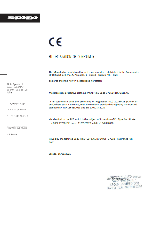 WEITERLESENNach einer langen Zeit der Erprobung auf der Rennstrecke, durch Computersimulationen und Tests im urbanen Umfeld, haben Techniker der SPIDI Community den Warrior Tech erstellt. Eine neue Technologie, nach einer sorgfältigen Studie von Biomechanismen und Ergonomien, fähig den Fahrer im Falle eines Sturzes an den am meisten sensitiven Bereichen zu schützen. Die niemals endende Suche nach, und Entwicklung von, technischen Innovationen, wird mehr und mehr treffsicher und erreicht seinen Höhepunkt mit der Vorstellung des Warrior Tech; eine Technologie mit einer Reaktionsfähigkeit bei extremer Beanspruchung. Dank seines modularen Designs passt es sich perfekt an die natürliche Form des menschlichen Körpers an. Das innovativste Ergebnis, welche die gegebenen Möglichkeiten von Polymeren und Thermoformverfahren steigert, ist in der Gestaltung seiner Struktur gebündelt und ermöglicht die industrielle Produktion eines Protektors mit noch nie erreichtem Schlagdämpfungsvermögen. Mit der Nutzung der Warrior Tech Einsätze, erreicht die Sicherheit des Fahrers eine Ebene ohne Gleichen, sie umfasst eine wichtige Aufgabe als Vorreiter in technischen Sportarten und eröffnet neue Szenarien in mobiler Sicherheit, welche weit über die Welt des Motorsports hinausgehen.MEHR ERFAHREN