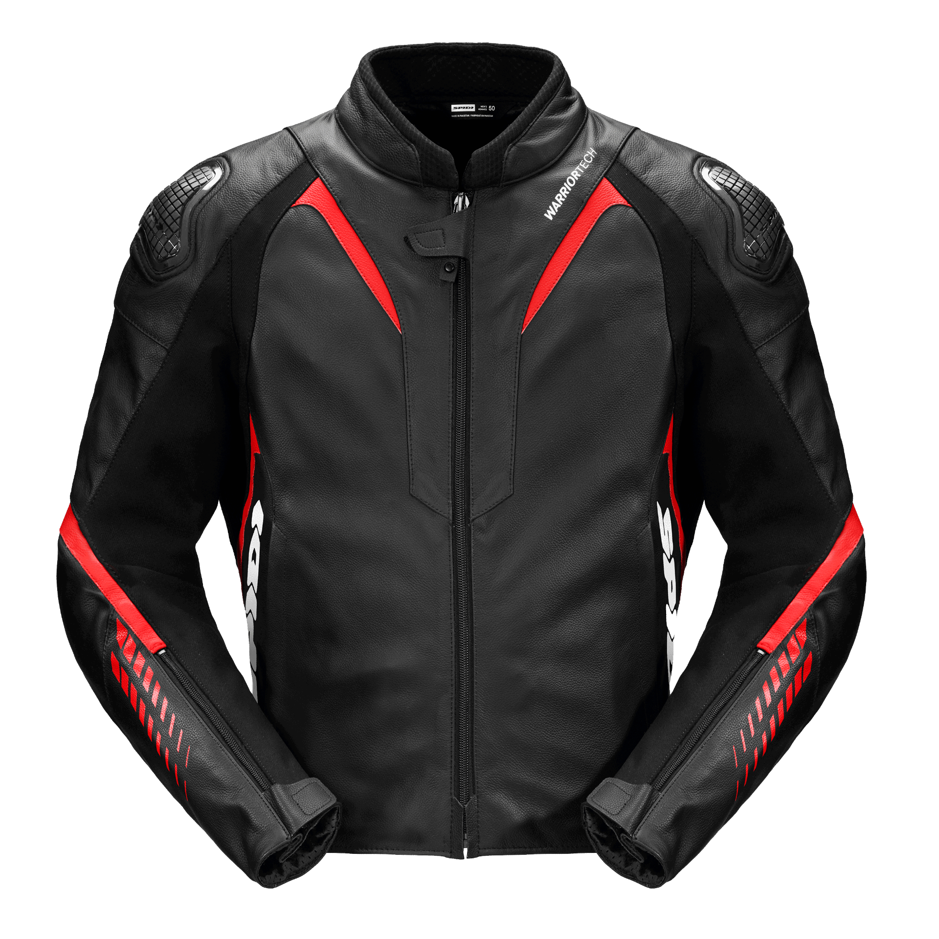 Die NKD-1 verfügt über herausnehmbare EN1621-1-zertifizierte Protektoren an Schultern und Ellenbogen sowie Warrior Tech-Kappen auf den Schultern. Für zusätzliche Sicherheit gibt es eine Tasche für einen Rückenprotektor der separat erhältlich ist, einen umlaufenden Reißverschluss zum Befestigen einer Motorradhose (kompatibel mit jeder SPIDI-Lederhose) und ein Druckknopfsystem zum Verbinden von Motorradjeans.