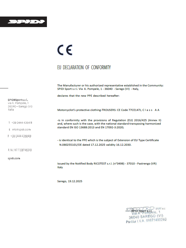 WEITERLESENNach einer langen Zeit der Erprobung auf der Rennstrecke, durch Computersimulationen und Tests im urbanen Umfeld, haben Techniker der SPIDI Community den Warrior Tech erstellt. Eine neue Technologie, nach einer sorgfältigen Studie von Biomechanismen und Ergonomien, fähig den Fahrer im Falle eines Sturzes an den am meisten sensitiven Bereichen zu schützen. Die niemals endende Suche nach, und Entwicklung von, technischen Innovationen, wird mehr und mehr treffsicher und erreicht seinen Höhepunkt mit der Vorstellung des Warrior Tech; eine Technologie mit einer Reaktionsfähigkeit bei extremer Beanspruchung. Dank seines modularen Designs passt es sich perfekt an die natürliche Form des menschlichen Körpers an. Das innovativste Ergebnis, welche die gegebenen Möglichkeiten von Polymeren und Thermoformverfahren steigert, ist in der Gestaltung seiner Struktur gebündelt und ermöglicht die industrielle Produktion eines Protektors mit noch nie erreichtem Schlagdämpfungsvermögen. Mit der Nutzung der Warrior Tech Einsätze, erreicht die Sicherheit des Fahrers eine Ebene ohne Gleichen, sie umfasst eine wichtige Aufgabe als Vorreiter in technischen Sportarten und eröffnet neue Szenarien in mobiler Sicherheit, welche weit über die Welt des Motorsports hinausgehen.MEHR ERFAHREN