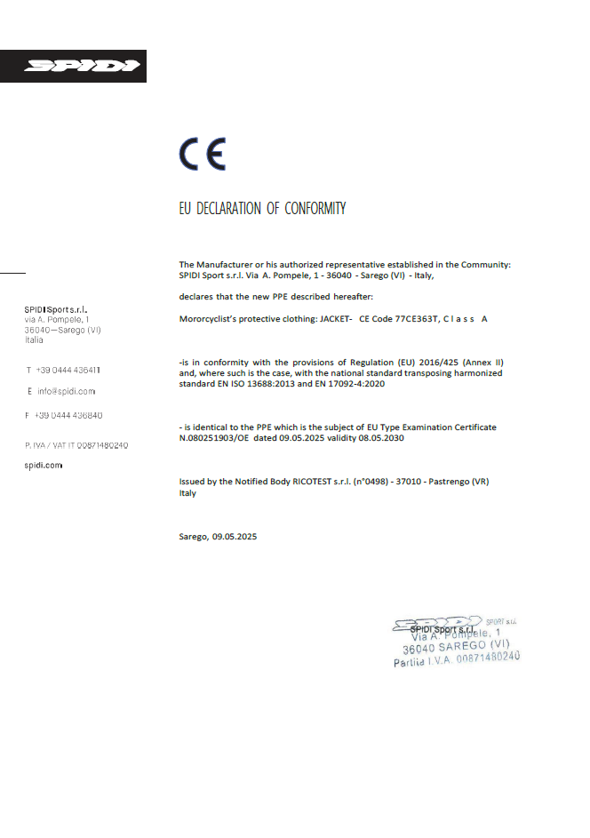 Zertifiziert nach Klasse A, ist die SPIDI Pit Lane mit herausnehmbaren Level-2-Protektoren an Schultern und Ellbogen ausgestattet und kann zusätzlich mit dem Warrior Chest- und Warrior Back Protector für noch mehr Sicherheit ergänzt werden.