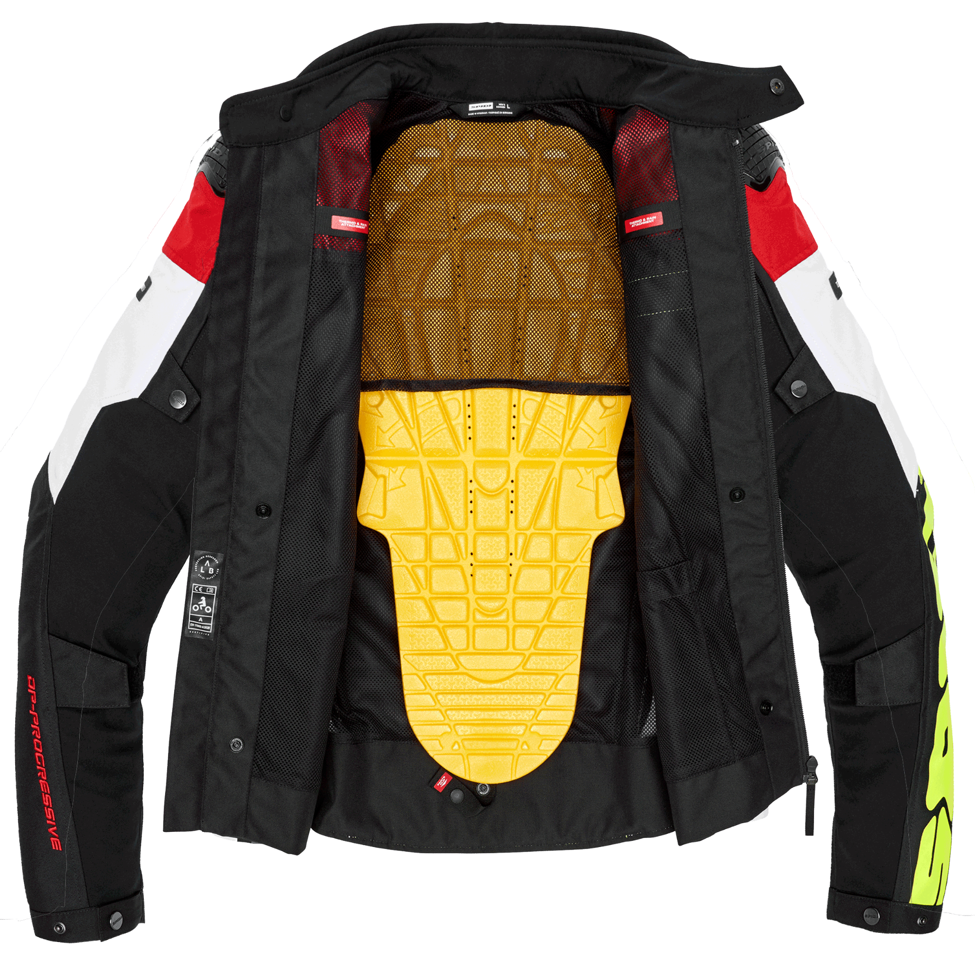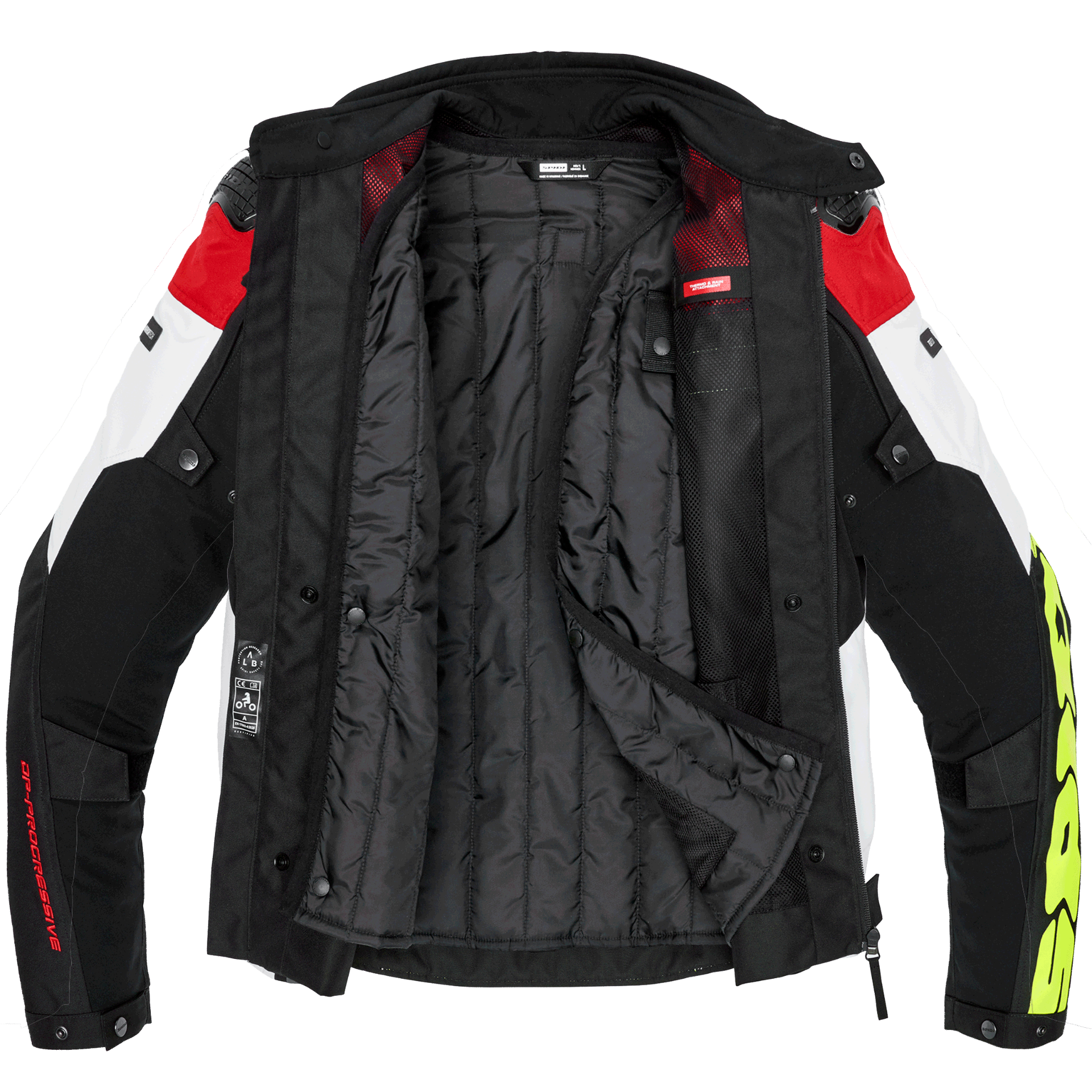 Die SPIDI Progressive Tex ist eine sportlich geschnittene, multi-saisonale Motorradjacke, ideal für mittlere Touren. Zertifiziert nach EN 17092-4:2020 in Klasse AA, beinhaltet sie ein herausnehmbares 100 g/m² Thermofutter und die Option, Step-In Wear-Produkte zu ergänzen, wie zum Beispiel das wasserdichte H2Out-Innenfutter.