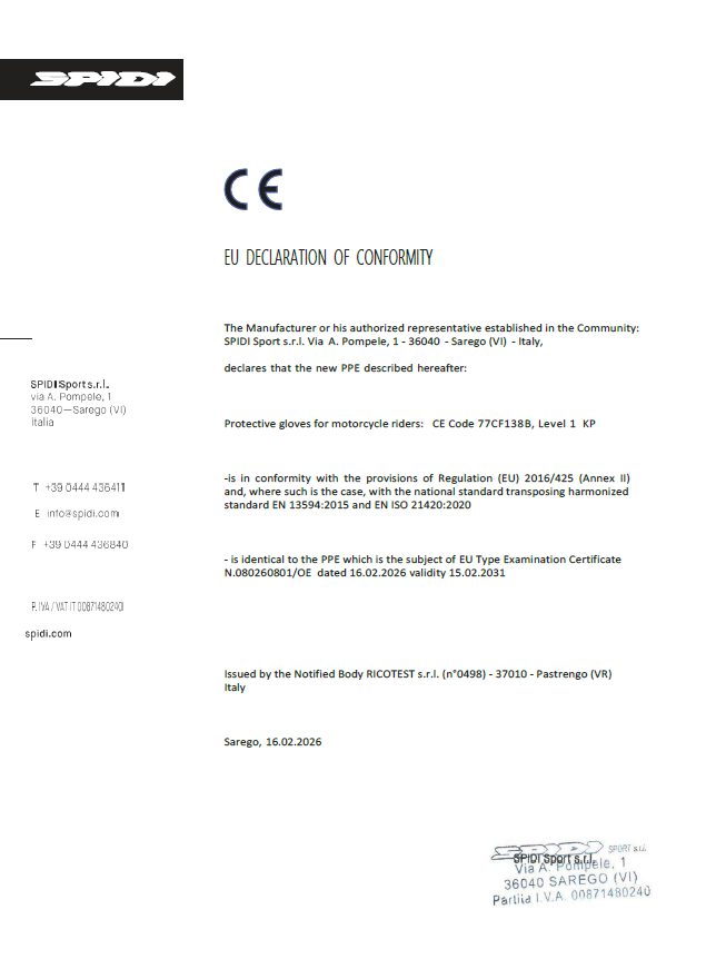 → Alle Vorhaben neuer SPIDI Produkte werden in Sarego (VI) Italien entwickelt und erarbeitet. Die seit 1977 erworbene Erfahrung wird bis heute in besonders anerkannte, zuverlässige und sichere Produkte übertragen, welche die Regeln und Vorgaben an Eignung, Können und Stabilität widerspiegeln.
