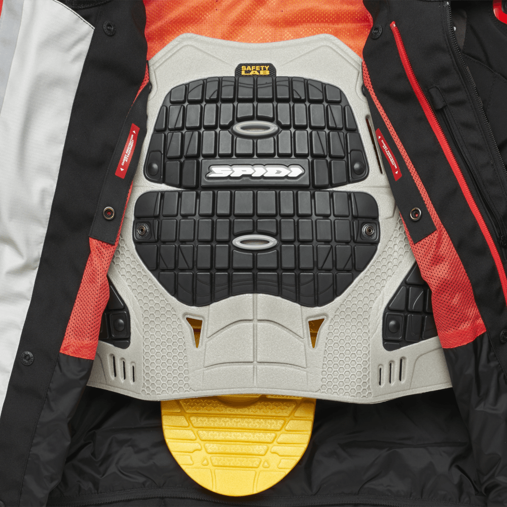 → Durch kontinuierliche Forschung und Erfahrung, gewonnen aus dem Safety Lab, entsteht eine neue von SPIDI signierte Technologie, aus einer Synthese von Geschichte und Innovation, zwei Grundwerten der Marke. Das Hauptziel des Safety Labs war immer die Suche nach der besten Verbindung von Komfort und Schutz.