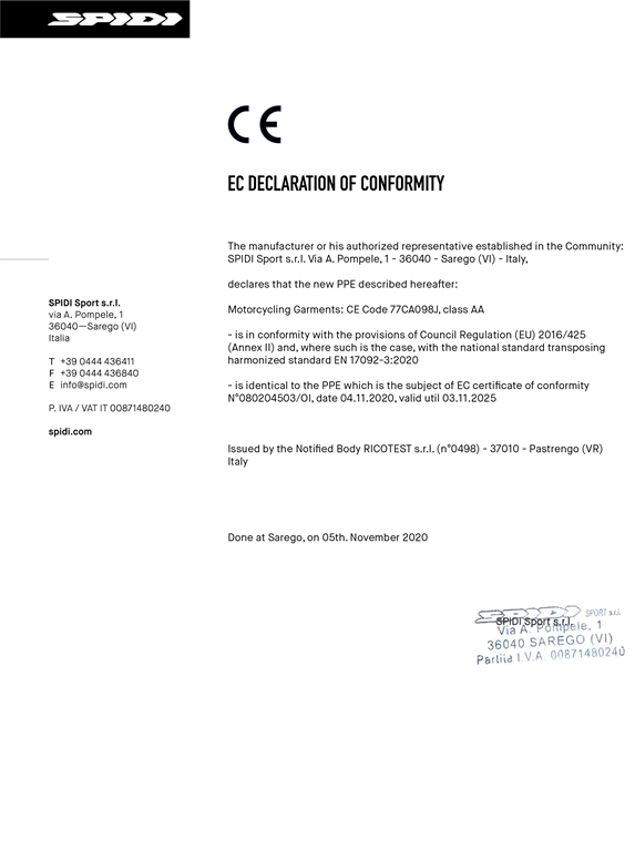 → Una alternativa ligera, asequible y de fácil cuidado al cuero. Materiales para conducción probados en el SAFETY LAB interno de SPIDI para garantizar el máximo rendimiento.