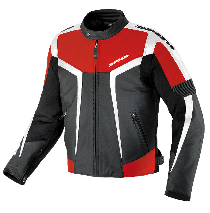 Un blouson conu et dvelopp en collaboration avec le dpartement Racing Spidi. Une large utilisation de tissu extensible (Tenax Flex, avec des niveaux de rsistance l'abrasion, mmes plus levs que ceux de la peau) tient un slim-fit , essentiel pour le conduit sportif.