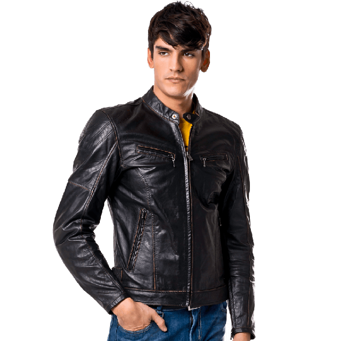 Blouson classique en cuir de buffle et avec un style inimitable, amliore avec coutures qualifis et renforts qui voquent immanquablement le monde custom. Indiqu pour une utilisation moto et aprs moto.