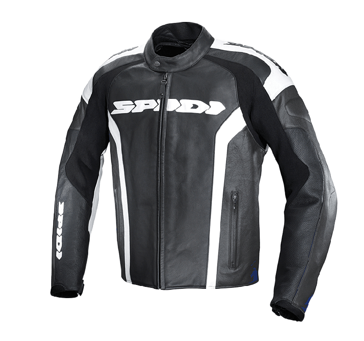 Blouson en cuir bovin avec une distincte vocation racing. L'ajustement est sec, construit pour la collecte typiques de la position racing.
