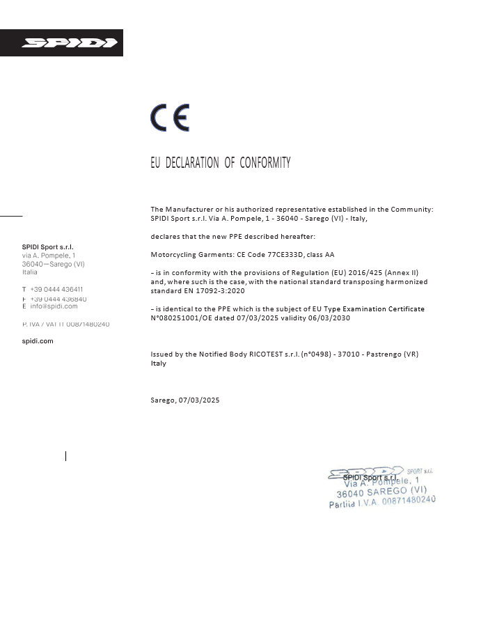 CONTINUADopo un lungo periodo di sperimentazione in pista, simulazioni software e test nell’ambiente urbano, i tecnici della comunità SPIDI hanno creato WARRIOR TECH. Grazie a minuziosi studi di ergonomia e bio-meccanica, WARRIOR TECH protegge il motociclista nelle zone più sensibili e soggette ad impatto in caso di caduta. Il design modulare permette ai protettori di adattarsi perfettamente alle forme del copro umano. La struttura valorizza le caratteristica dei polimeri e aumenta la capacità di assorbimento dell’impatto. Grazie all’applicazione di WARRIOR TECH , la sicurezza del motociclista raggiunge livelli mai visti prima. Uno standard di qualità superiore apre nuovi scenari per la sicurezza, scenari che vanno oltre agli orizzonti del mondo moto. DETTAGLI