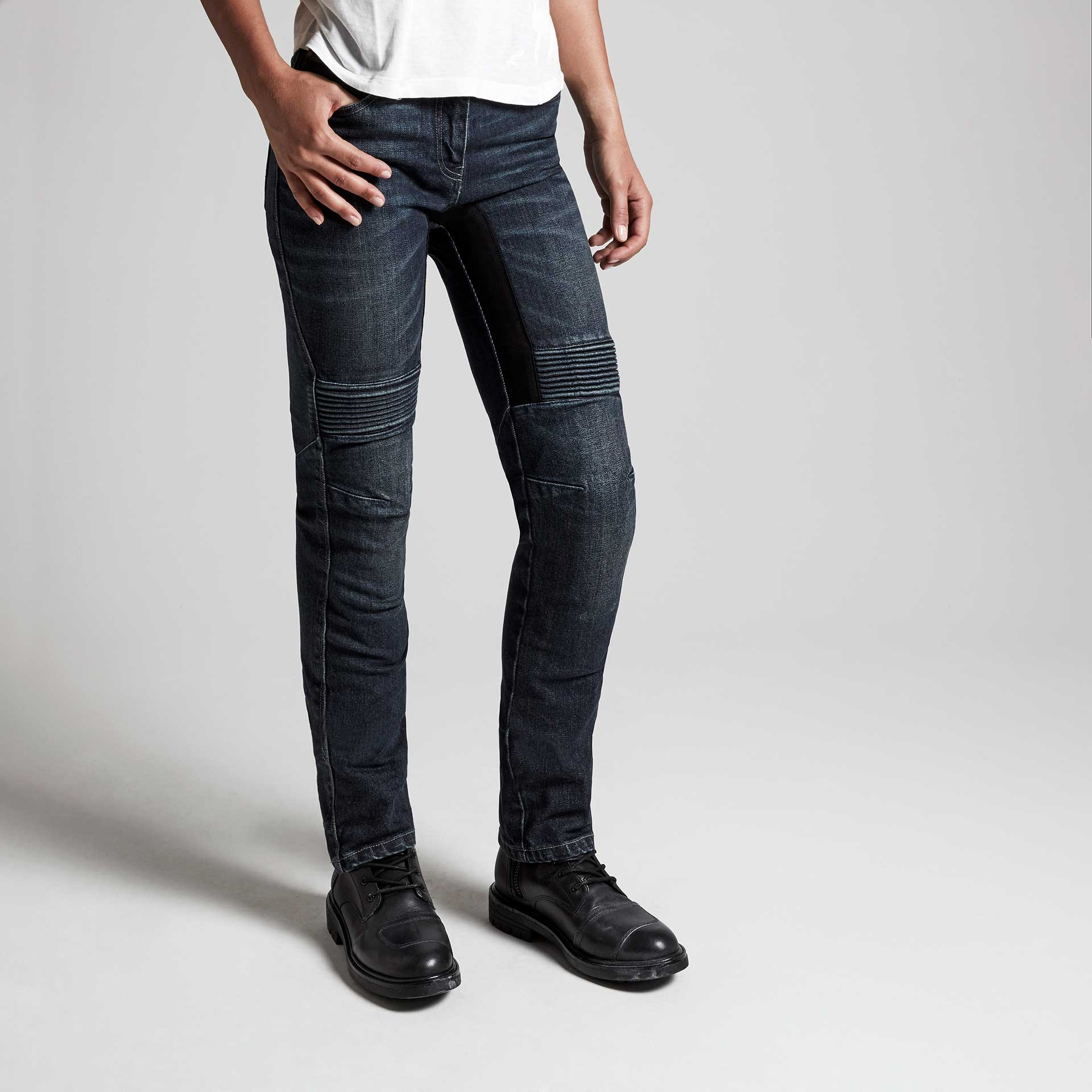 Le nouveau jeans moto SPIDI Furious Pro Lady est entièrement certifié prEN17092-3: 2017 Class AA et a été spécialement développé pour offrir des performances exceptionnelles en moto, sans sacrifier le confort au quotidien. La structure principale est en coton Cordura de 13 oz, résistant à l'abrasion et à la pénétration, et doté d’une attache pour fixer solidement un blouson. Des empiècements flexibles au-dessus des deux genoux offrent du confort pour toute la journée et le jean est doté d'une coupe slim pour une coupe plus moderne et ajustée avec des matériaux qui ne battent pas au vent à grande vitesse. Chaque pantalon est livré avec des protections genoux et hanches Warrior Lite Armor de niveau 1, certifiées conformes à la norme En 1621-1: 2012, les protections de genoux sont ajustables pour permettre à chaque pilote de trouver la meilleure position. L’entre jambe est fabriqué avec un matériau souple et respirant pour éviter les plis et la transpiration. Il y a trois poches avant et deux poches arrière avec une barrière intérieure pour le portefeuille.