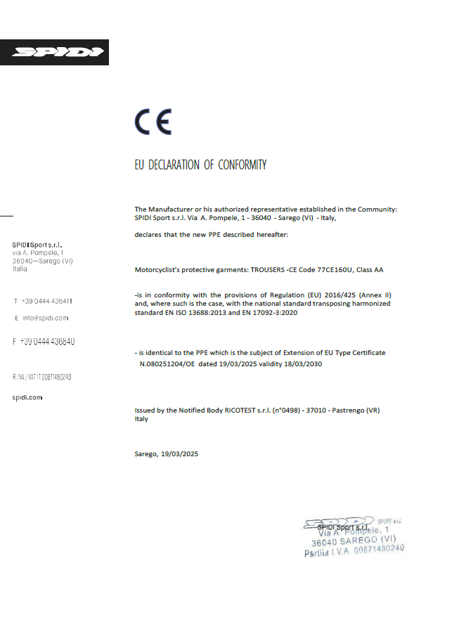 Los pantalones SPIDI 4 Season V3 Lady representan un avance significativo respecto a las versiones anteriores, ya que incorporan soluciones innovadoras y materiales de alta calidad, normalmente reservados a modelos de gama más alta. En términos de seguridad, cuenta con la certificación de clase AA, con protecciones desmontables Warrior Lite Nivel 2 en las rodillas y Warrior Lite Nivel 1 en las caderas.