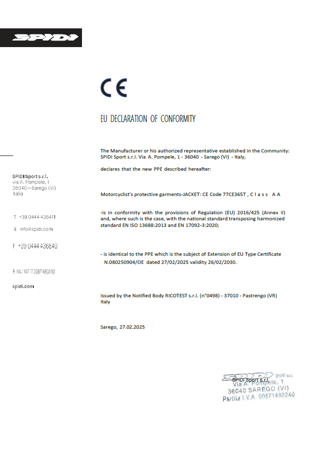 Certifiée selon la norme EN 17092-3:2020 de classe AA, la veste Stretch Tex Lady combine confort, protection et polyvalence, aussi bien sur la moto qu’à côté.